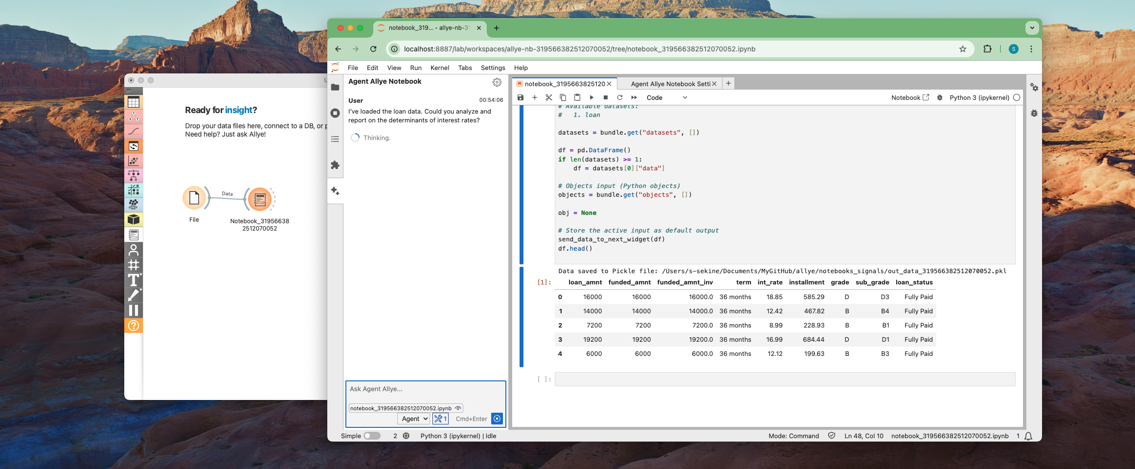 JupyterLab. From the panel on the left, select "Notebook Agent" to start theNotebook Agent. - Ask the Agent a question, for example: “I’ve loaded the loan data. Could you analyze and report on the determinants of interest rates?”