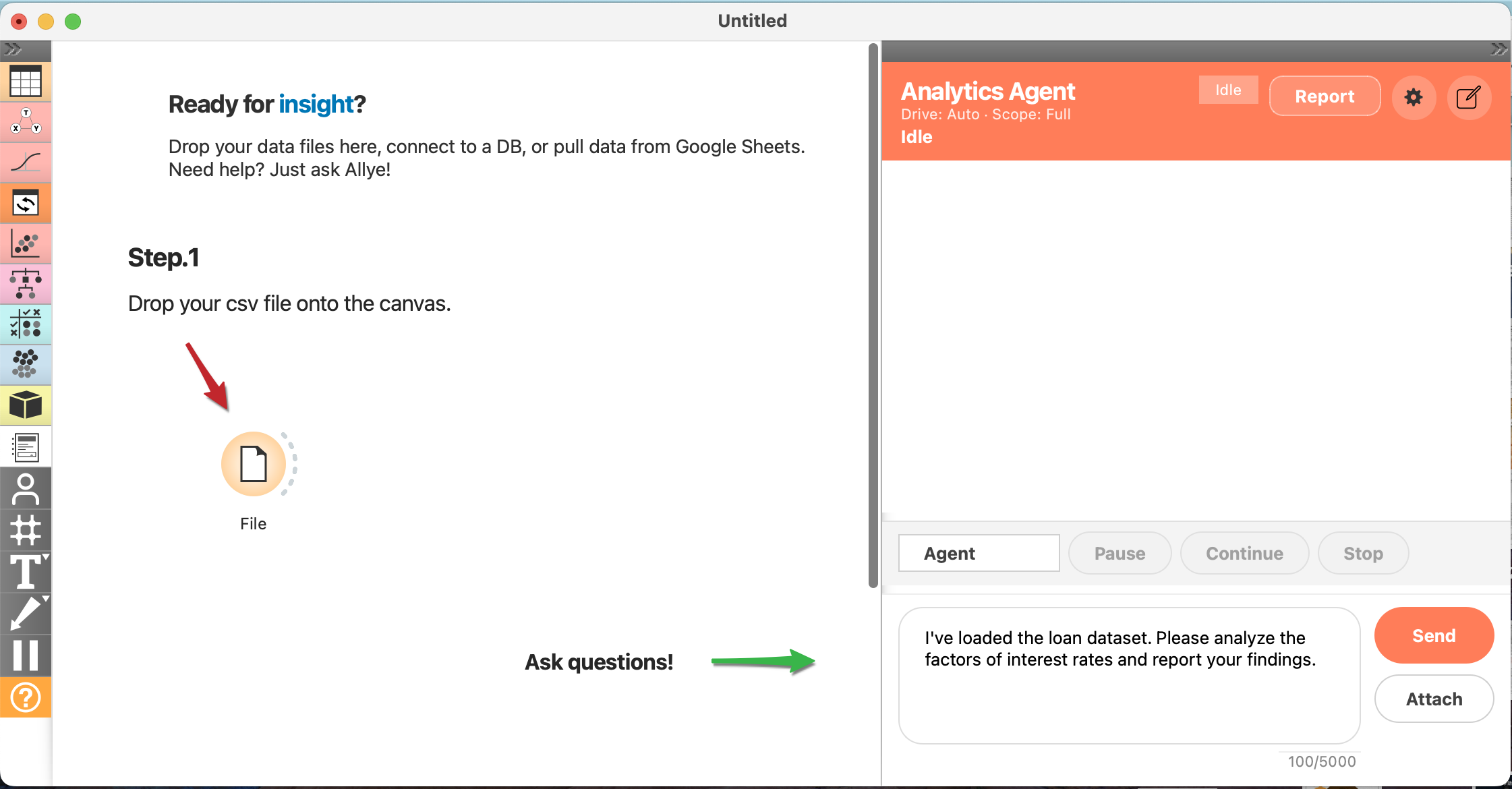 - Ask the Agent a question, for example: “I’ve loaded the loan data. Could you analyze and report on the determinants of interest rates?”