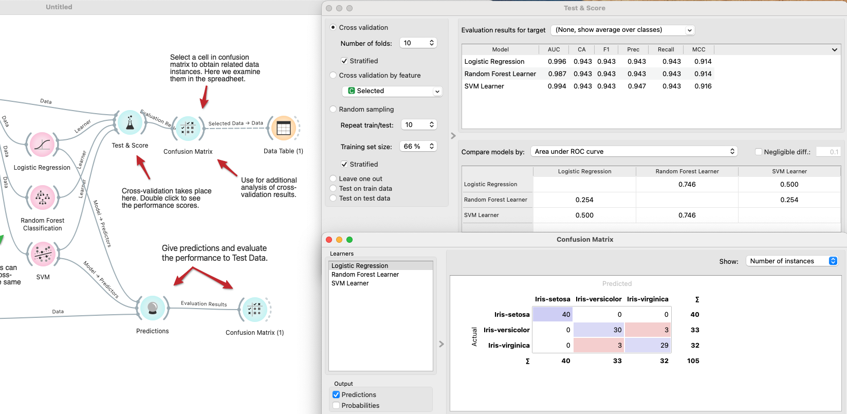 Confusion Matrixwidget, connect it, and confirm the generalization performance.