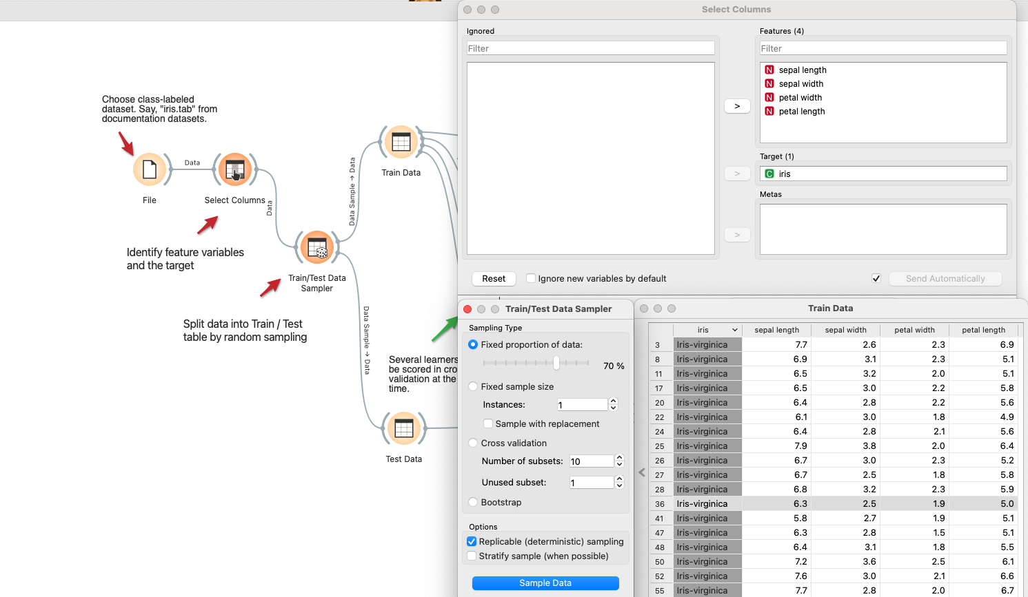 Data Samplerto randomly split the data into two parts. Here we use 70% as the train data and the remaining as the test data.